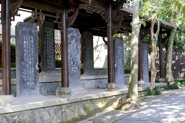 在海瑞祠前厅的碑廊中,碑刻林立,陈列了多块海瑞书写和缅怀海瑞的碑文,其中以“寿字碑”最为有名。