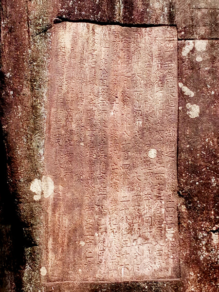 “平茶寮碑”是王阳明率军剿灭“山贼”的纪功碑,翔实记载了当时王阳明剿灭“山贼”的真实过程和他当时刻碑的用意。石碑高8米、宽4米,距今有500多年历史。由于岁月磨砺,碑文字迹已斑驳模糊,但岩石西侧的“纪功岩”三个大字还清晰可见。